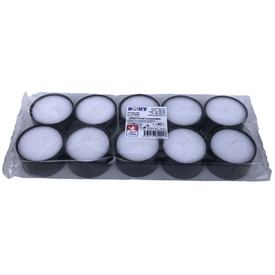 Svíčka v plastovém černém obalu určená pro venkovní použití například na hřbitovy. Doba hoření až 8 hodin. Doba hoření je závislá na klimatických podmínkách. Baleno po 10-ti kusech.