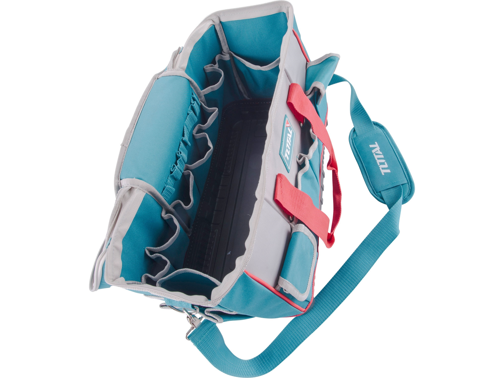 Velikost: 40cm, 25 ks kapes na nářadí, Kulatá horní geometrická konstrukceMateriál: 600D a 1680D polyester, Maximální nosnost: 20 kgDxŠxV: 46x23x33 cm, Zesílená plastová základna pro dlouhou životnostVnitřní kapsy pro další úložnou kapacitu, Včetně nastavitelného ramenního popruhuBaleno papírovou kartou.