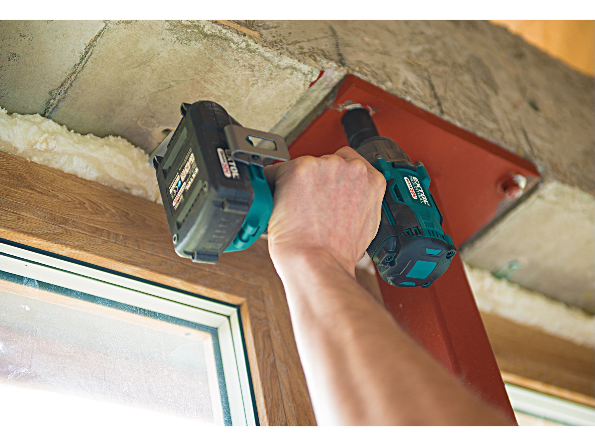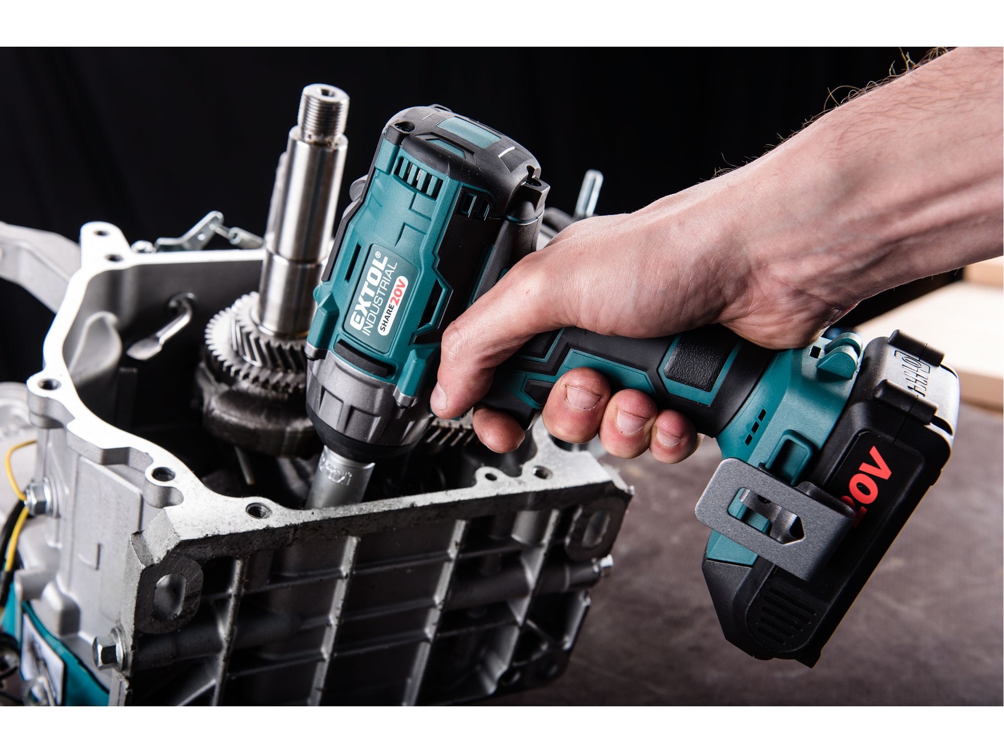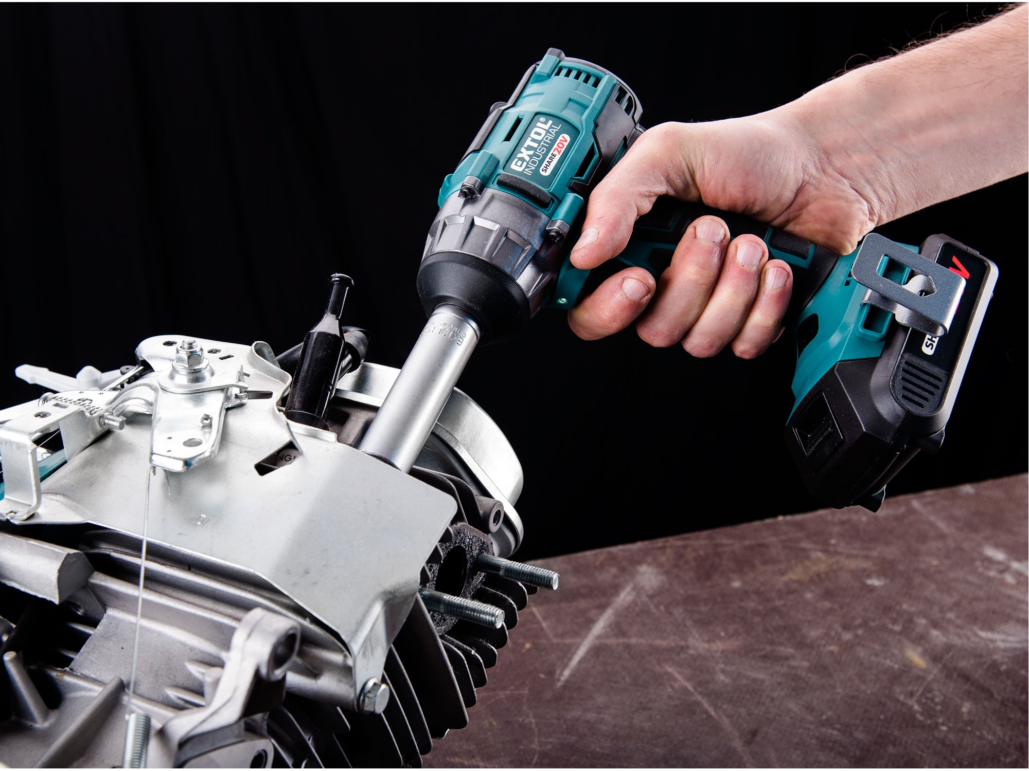 Lehký a výkonný rázový brushless aku utahovák s vysokým max. kroutícím momentem 250Nm Vám poskytuje výkon, který potřebujete k dokončení široké škály utahovacích operací – utahování a povolování šroubů. Utahovák je poháněná nejmodernějším „brushless" motorem. Tento nový typ motoru má vyšší životnost, je výkonnější a má menší spotřebu el. energie než klasické motory s uhlíkovými kartáči. Rázový moment zvyšuje sílu utahováku při šroubování a zároveň snižuje spotřebu baterie. Proto je při šroubování mnohem efektivnější než aku vrtačka a také zašroubuje více šroubů na jedno nabití baterie. Celokovová převodovka uložená v kovovém pouzdru zajišťuje bezchybný chod při i vysoké zátěži a přispívá k lepšímu odvodu tepla vznikajícího při práci. Pro běžnou práci dostačují jeden nebo dva 2000mAh akumulátory, které můžete rychle nabít v rychlonabíječce, pro náročnější nebo delší práci doporučujeme větší akumulátory s kapacitou 4000–8000mAh. Akumulátor lze použít ve všech typech nářadí řady EXTOL SHARE20V. Díky použité Li-ion technologii je ho možné kdykoliv dobíjet, aniž by se tím snižovala jeho kapacita. Li-ion akumulátor ztrácí energii vlivem samovybíjení velmi pomalu a vydrží dlouho nabitý a připravený k použití.