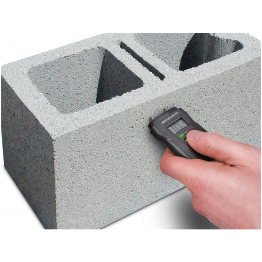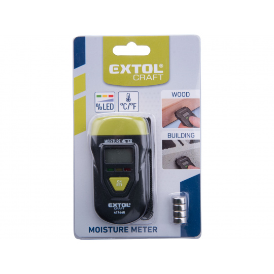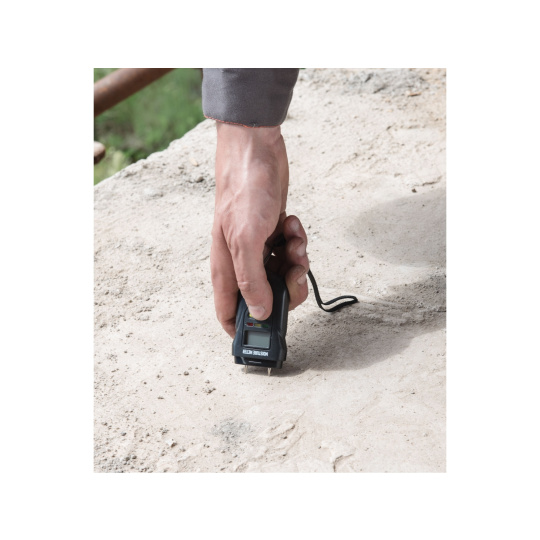 Vlhkoměr je vhodný pro měření vlhkosti v řezaném dřevě (také v papíru, kartonu) a vytvrzených materiálech (malta, beton a sádra). Zobrazuje také vlhkost nebo teplotu ovzduší. Má tři LEDky, které indikují vlhkost měřeného materiálu.