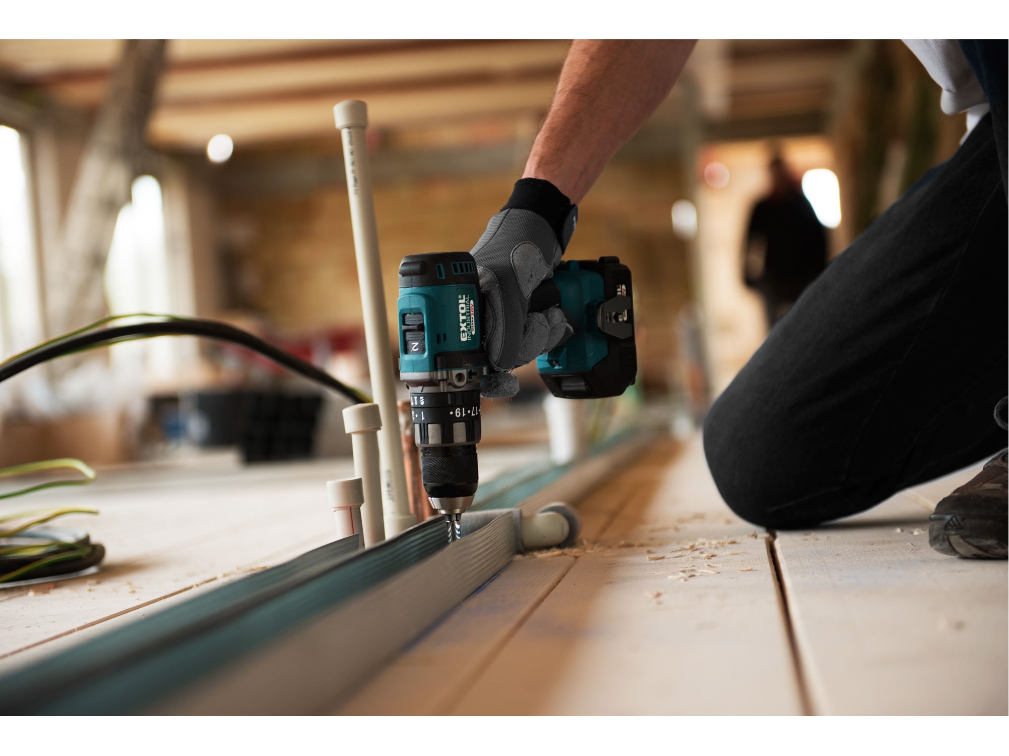Lehký a výkonný dvourychlostní vrtací aku šroubovák s příklepem Vám poskytuje vysoký vrtací výkon při vrtání do široké škály materiálů – ocel, kovy, dřevo, plast, ale s příklepem také do zdiva. Je určen pro náročné práce a díky svému příjemnému designu se s ním velmi dobře pracuje i při dlouhodobém používání. Vrtačka je poháněná nejmodernějším „brushless" motorem. Tento nový typ motoru má vyšší životnost, je výkonnější a má menší spotřebu el. energie než klasické motory s uhlíkovými kartáči. Celokovová převodovka s 5ozubenými kolečky je speciálně navržena pro vysoký kroutící moment a zajišťuje bezchybný chod i při vysoké zátěži. Vrtáky se upínají do kvalitního celokovového sklíčidla s aretací. Díky plynulému nastavení momentů, lze využít celý rozsah stupnice a nejen vyznačených 20 stupňů. Vrtačka má 3 režimy práce: vrtání, šroubování a vrtání s příklepem. Mechanický příklep je vynikající pro vrtání do tvrdších materiálů. Integrovaná LED svítilna umístněná na spodní části rukojeti osvětluje pracovní prostor a pro zlepšení orientace v tmavých prostorech má zpožděné vypnutí. Pro běžnou práci dostačují jeden nebo dva 2000mAh akumulátory, které můžete rychle nabít v rychlonabíječce, pro náročnější nebo delší práci doporučujeme větší akumulátory s kapacitou 4000–8000mAh. Akumulátor lze použít ve všech typech nářadí řady EXTOL SHARE20V. Díky použité Li-ion technologii je ho možné kdykoliv dobíjet, aniž by se tím snižovala jeho kapacita. Li-ion akumulátor ztrácí energii vlivem samovybíjení velmi pomalu a vydrží dlouho nabitý a připravený k použití.