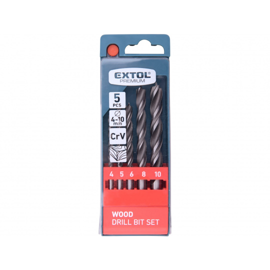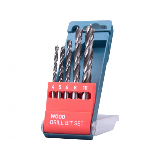 vrtáky do dřeva, sada 5ks, O 4-10mm, CrV