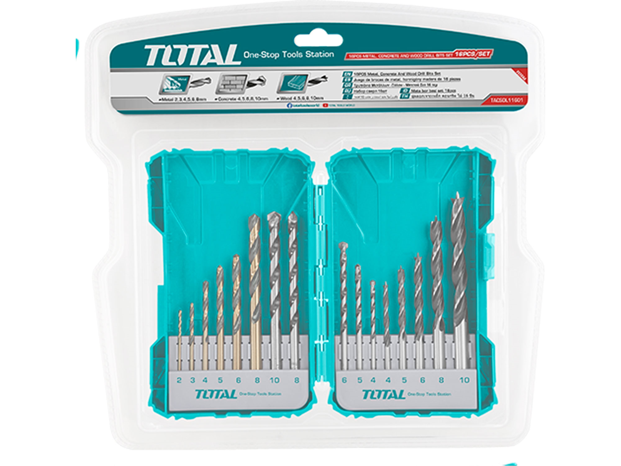 6ks vrtáků do kovu: 2-8mm 5ks vrtáků do betonu: 4-5-6-8-10mm 5ks vrtáků do dřeva: 4-5-6-8-10mm