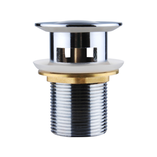 Umyvadlová výpusť "Click–Clack". Již nemusíte přemýšlet kam odložit gumovou zátku, nebude vám překážet řetízek, ani vás nebude otravovat nepohodlné ovládání zátky pomocí táhla u baterie. Systém "Click–Clack" je ovládán pouhým stlačením zátky.