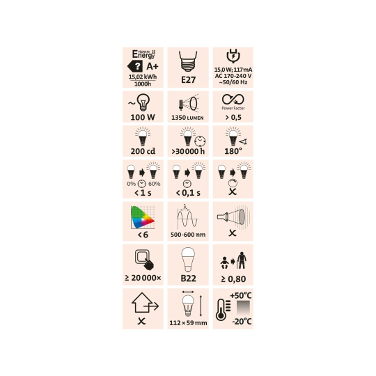 teplota světla: 2800K, úhel svítivosti: 240°, svítí jako 100W klasická žárovka, velikost:132x70mm