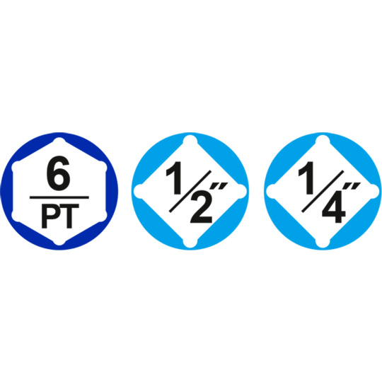 1/4¨ 6-7-8-9-10-11-12-13, 1/2¨ L 50mm 8-10-11-12-13-14-15-16-17-18-19-20-21-22-23-24-27-30-32mm, L 77mm 14-15-17-19mm, E10-12-14-16-20