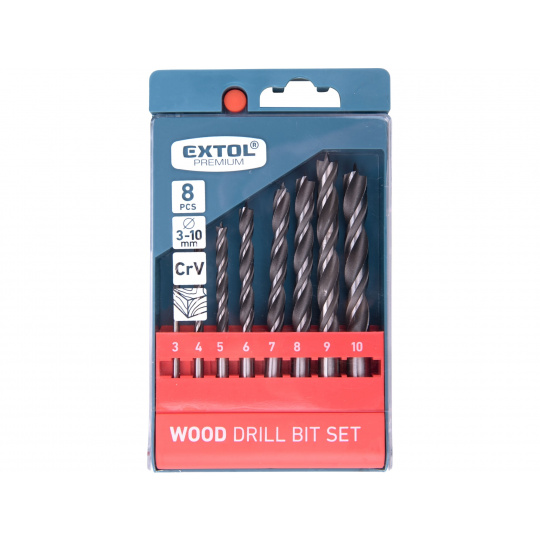 vrtáky do dřeva, sada 8ks, O 3-10mm, CrV