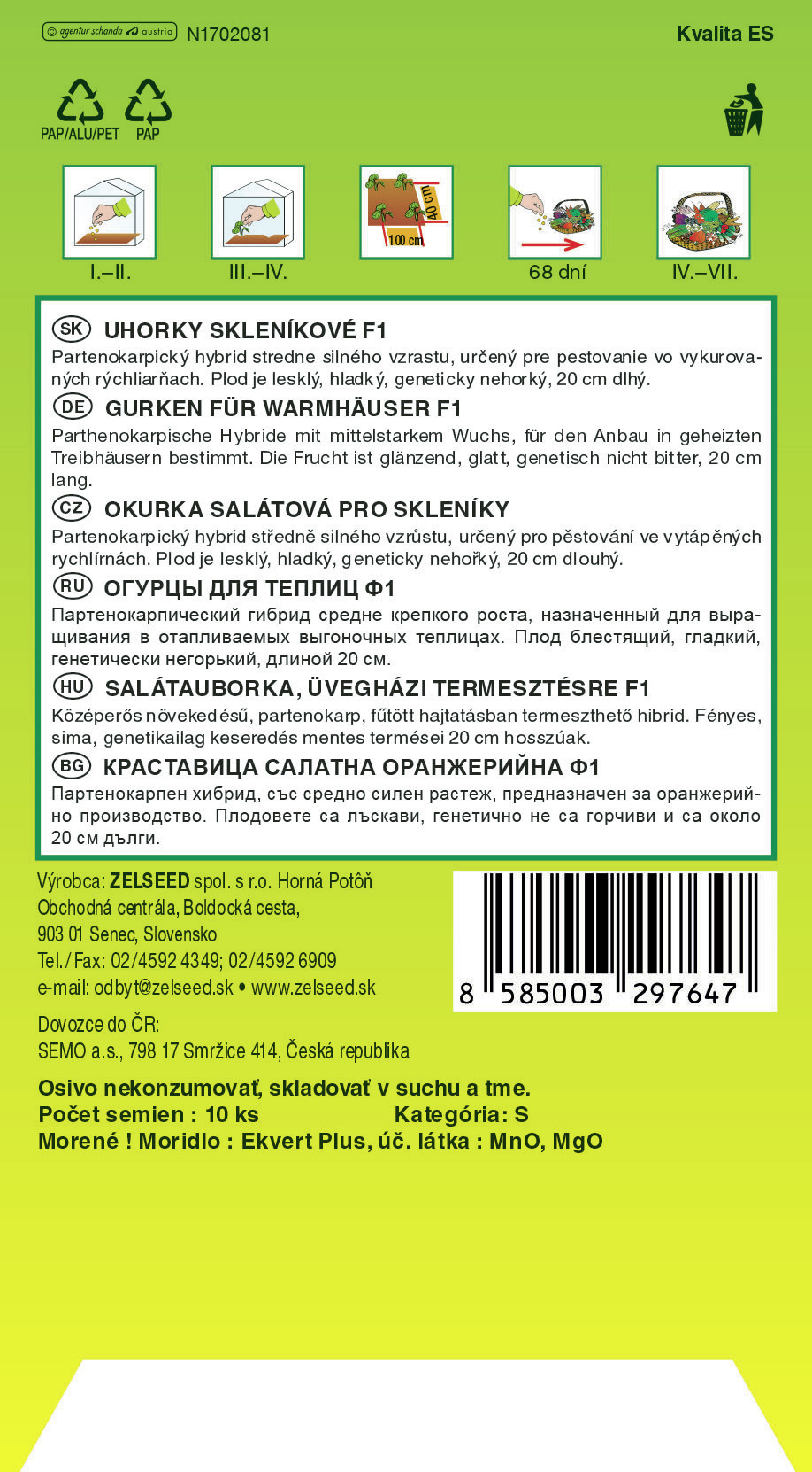 Zelseed Okurka salát. - Vanda F1 partenokarp. fol. sklen. 10s