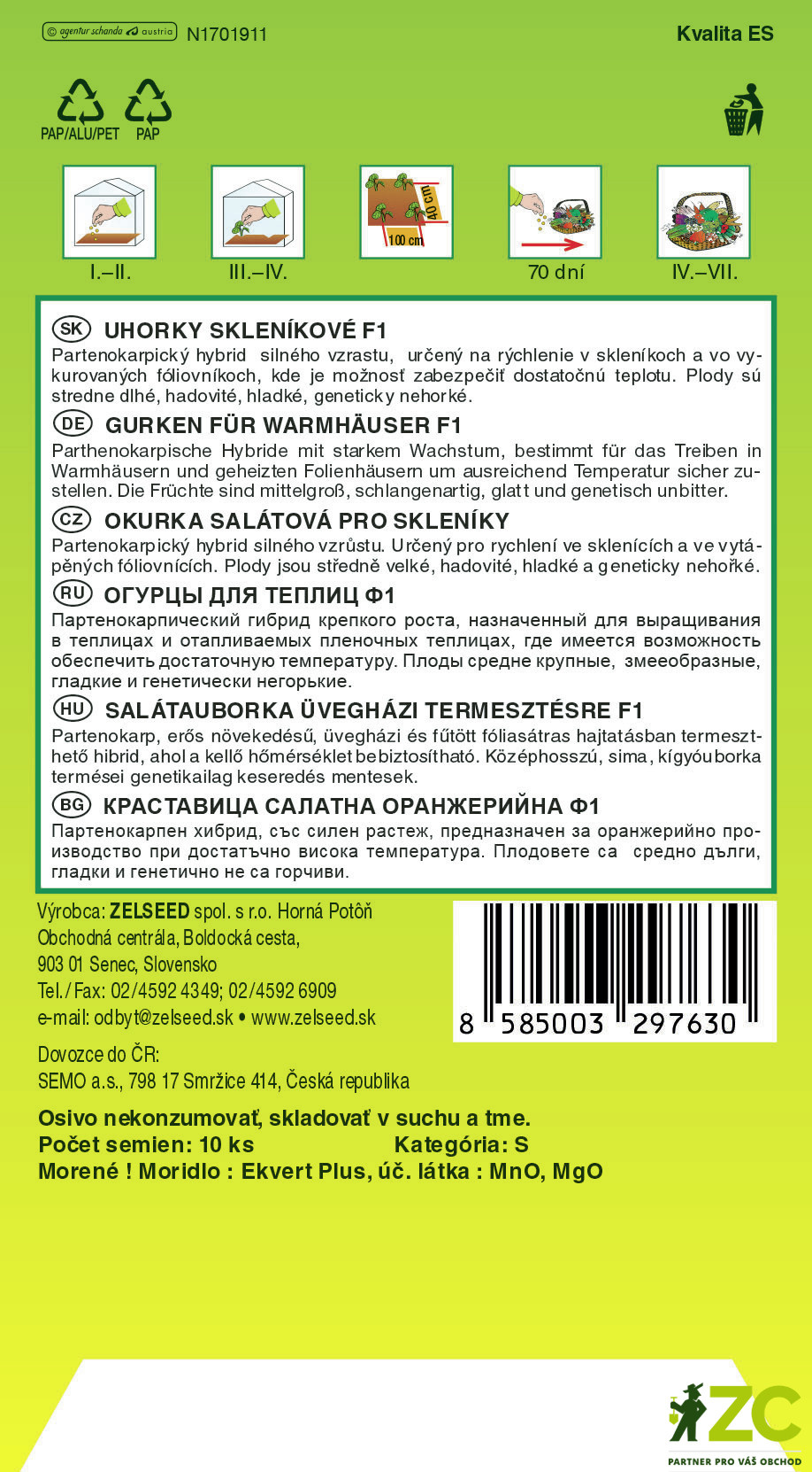 Zelseed Okurka salát. - Vesna F1 partenokarp. fol. sklen. 10s