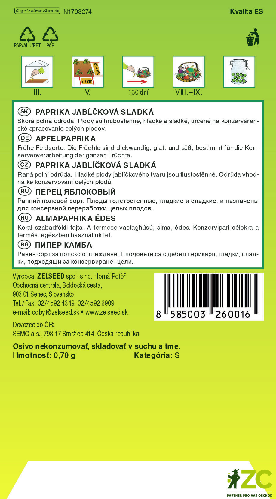Zelseed Paprika zel. sladká - Ilsa Zel pole, jablíčková 0,7g
