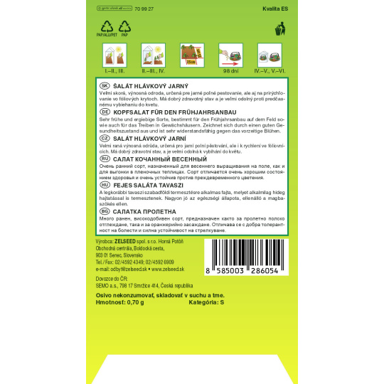 Zelseed Salát jarní - Král Máje I. raný 0,7g