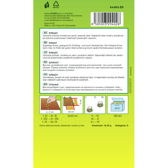 Zelseed Špenát jarní - Neptun 18g